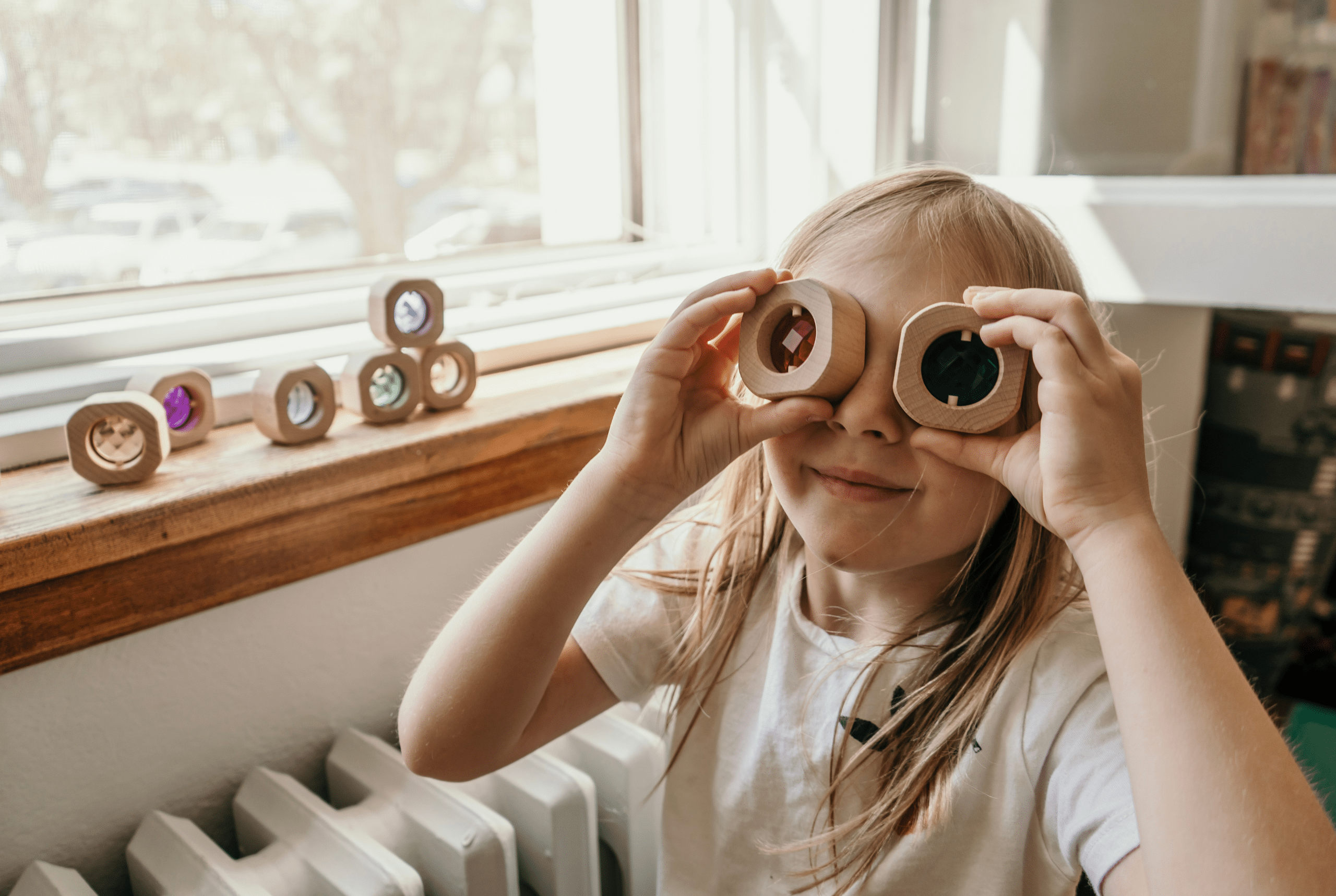 Le matériel ouvert et polyvalent permet à l’enfant de mettre à profit sa créativité dans l’utilisation de son matériel de jeu, par exemple en utilisant une arche de l’arc-en-ciel de Grimm’s comme téléphone et, plus tard, pour balancer sa poupée. Lorsque l’enfant joue librement, il peut utiliser sa créativité réellement, avec ou sans intention de départ.