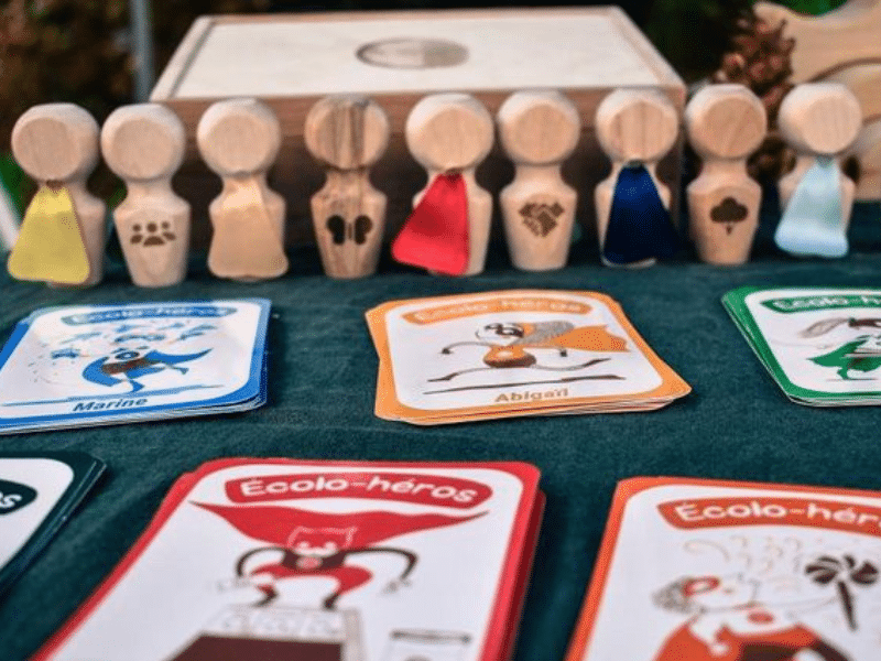 Voici les écolo-héros! Ce sont de petites figurines faites à la main, à partir de matières durables. Elles représentent 10 héros et héroïnes alliant leurs missions pour la protection de l’environnement. Ces figurines constituent un matériel polyvalent et pourront arborer le rôle que les enfants leur attribueront dans leurs différents jeux. Elles leur offrent une panoplie d’opportunités, tout en portant une mission lourde de sens: la protection de l’environnement. Avec leurs capes colorées, les éco-écolos ajoutent une petite touche de couleur à ces personnages en bois naturel. Classez-les, faites-les voler dans les airs, donnez-leur des missions afin qu’ils puissent utiliser leurs super pouvoirs!