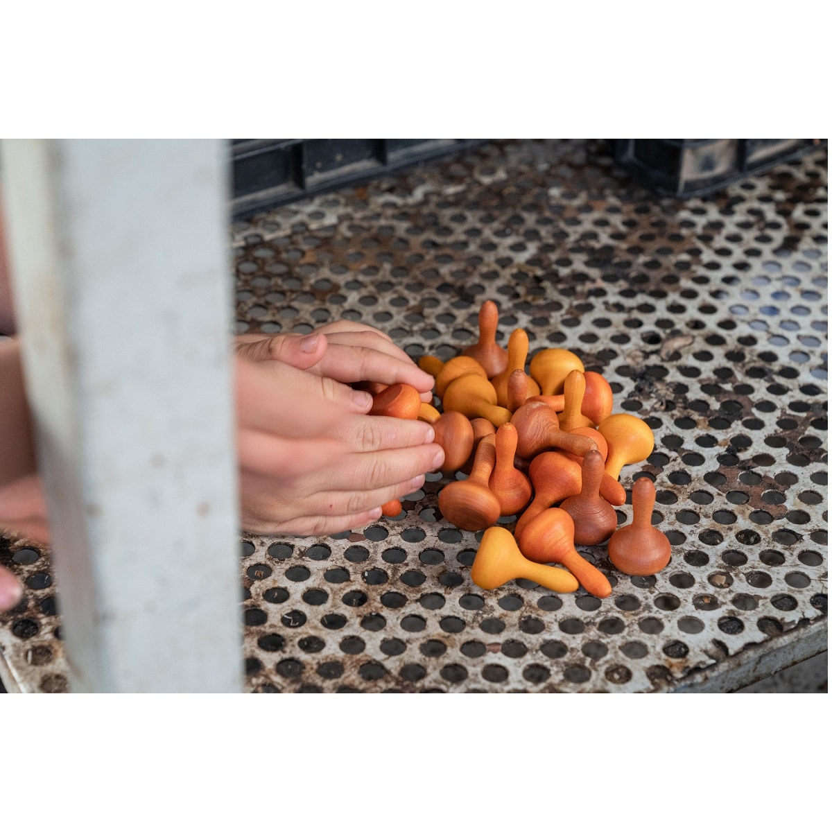 Appelées »squash pumpkin » par Grapat, ces 36 citrouilles aux teintes orangées font partie de la collection Mandala. Cette collection de Grapat se décompose en plusieurs éléments naturels: fleurs, ananas, ruches, arbres, gouttes de pluie, etc. Les mandalas de Grapat sont tellement versatiles! Ils sont vraiment un bel ajout à votre matériel libre et polyvalent puisque les ”loose parts” comme les mandalas de Grapat peuvent permettre l’émergence de certains concepts mathématiques en étant utilisés pour trier ou en faisant des séquences puis se transformer en jeu symbolique en devenant de la nourriture une fois dans un bol. Nos petits aiment faire des collections de toutes sortes d’objets! Avec ces petites pièces, leur envie de collectionner pourra atteindre un autre niveau.