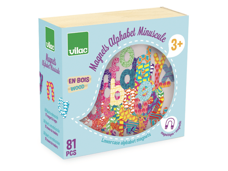 Cette boite de Vilac contient les lettres de l’alphabet en bois aimantées pour faire ses premiers mots sur le réfrigérateur ou sur un tableau magnétique. C’est une manière ludique d’initier vos enfants au concept de l’écriture!