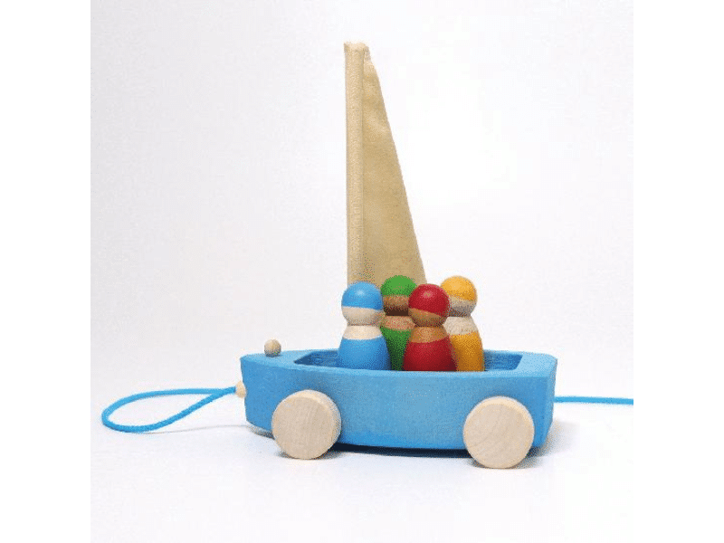 Ce bateau à tirer de Grimm’s comprend 4 matelots colorés.