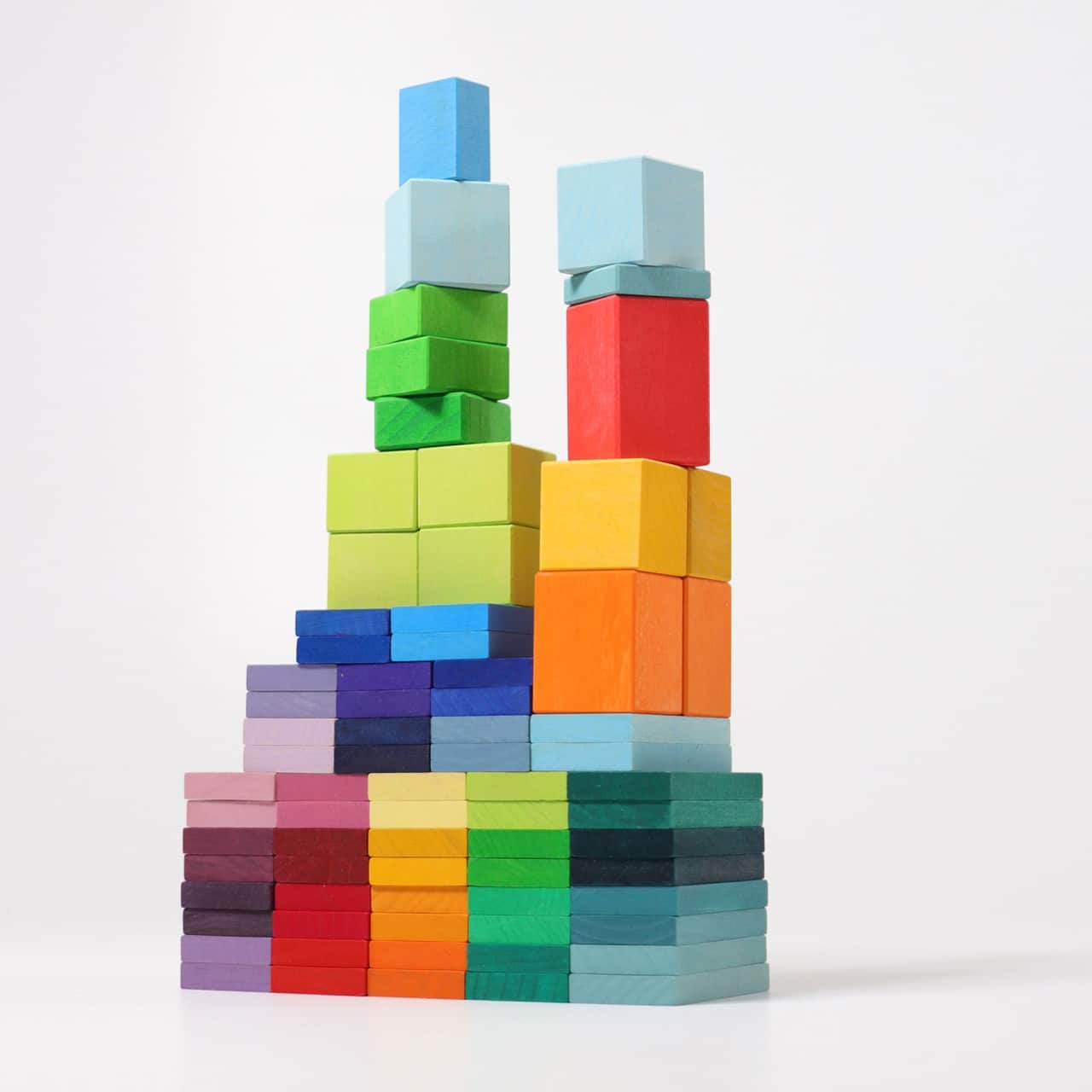 Le »color charts rallye » est offert dans un magnifique éventail de 29 couleurs. Il contient 74 blocs de construction dans une boîte. Les rectangles plats mesurent 4 cm x 8 cm avec une épaisseur de 1 cm. Les autres blocs mesurent de 1 à 6 cm de longueur avec une épaisseur de 4 cm.
