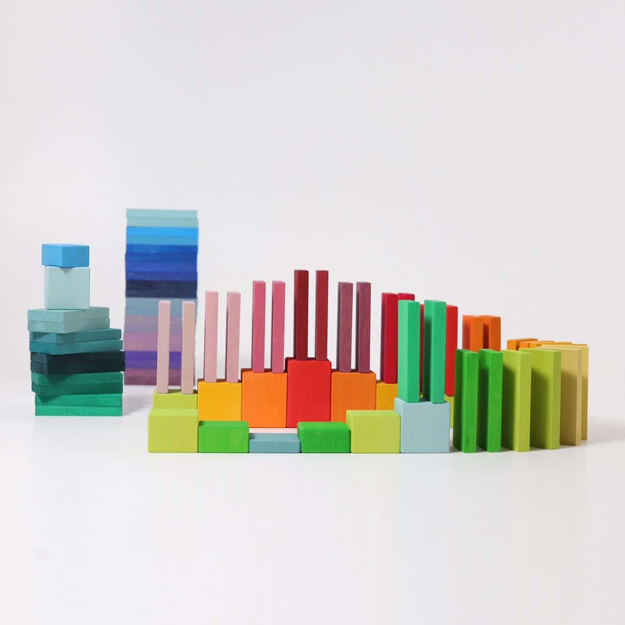 Les blocs de construction Rallye de Grimm’s offrent des possibilités de jeu infinies: bâtissez des constructions pour l’effet domino classique, associez et nommez les couleurs, construisez des tours, des bâtiments, des châteaux et bien plus encore! Cet ensemble Grimm’s sera un merveilleux ajout à vos ensembles de constructions!