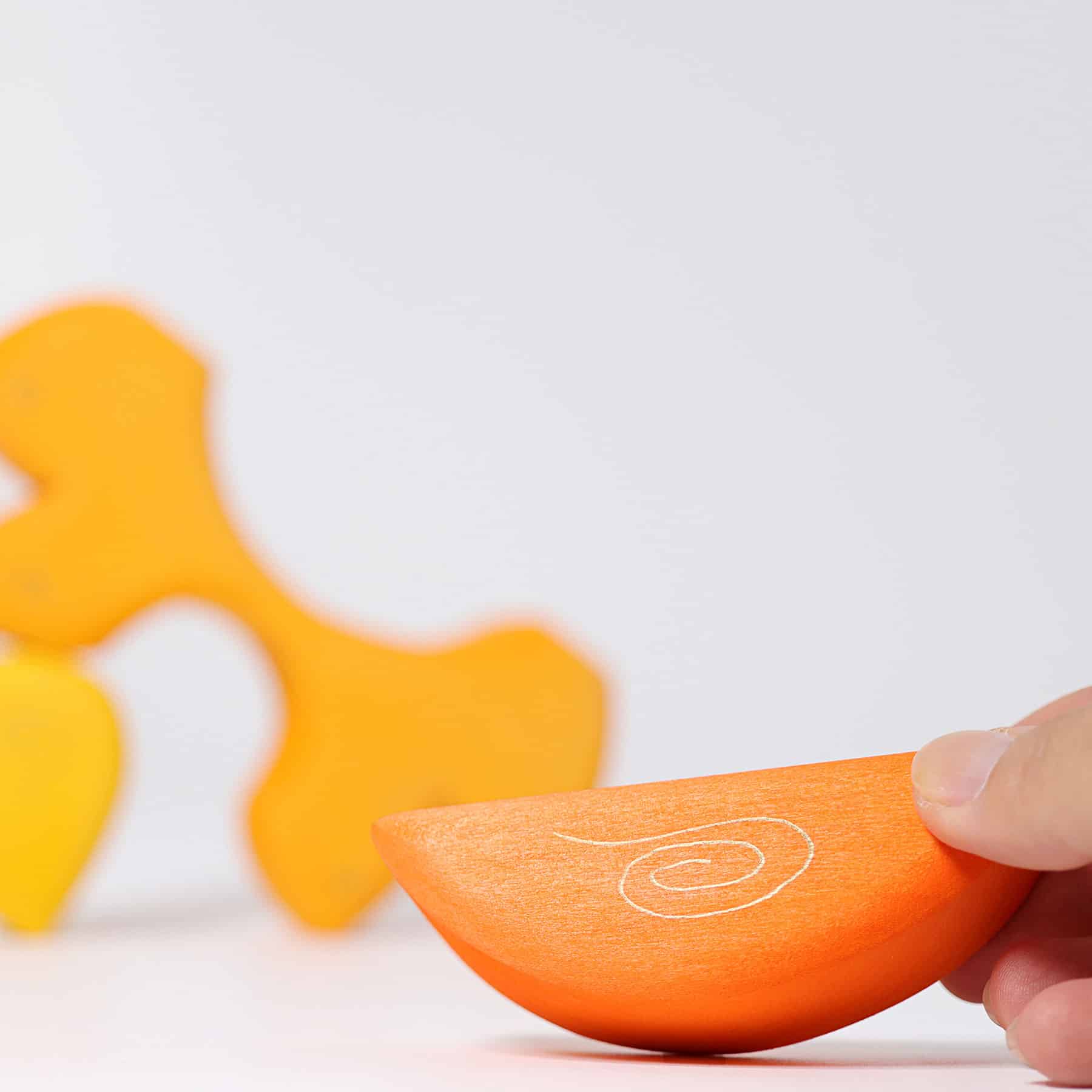 Les jouets Grimm’s sont conçus en fonction du jeu libre et polyvalent. Tous les jouets Grimm’s sont ouverts et sans mode d’emploi pour un jeu aux possibilités infinies. L’atelier de l’entreprise est situé en Allemagne. Pour Grimm’s, le sens du mot ‘’durable’’ ne se simplifie pas à sa définition première, soit ‘’qui dure longtemps’’. Grimm’s joint le mot durable au mot conception pour obtenir ‘’conception durable’’. Ainsi, les jouets sont non seulement durables de par leur matériau, mais aussi de par leur conception, c’est-à-dire que le design n’est pas affecté par les modes éphémères permettant au jouet d’être réellement durable dans son ensemble.