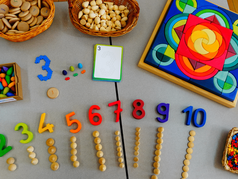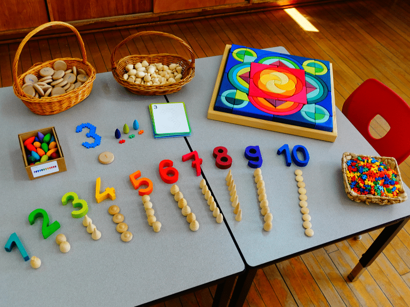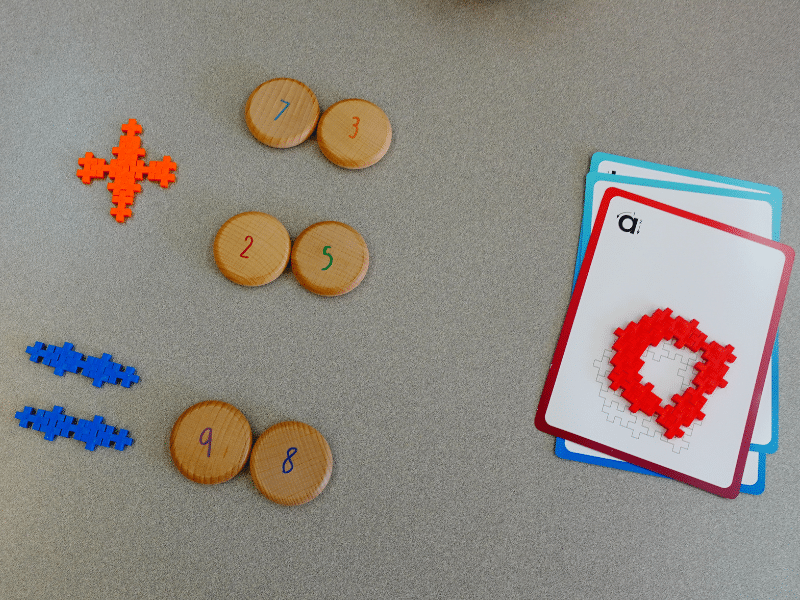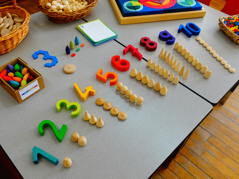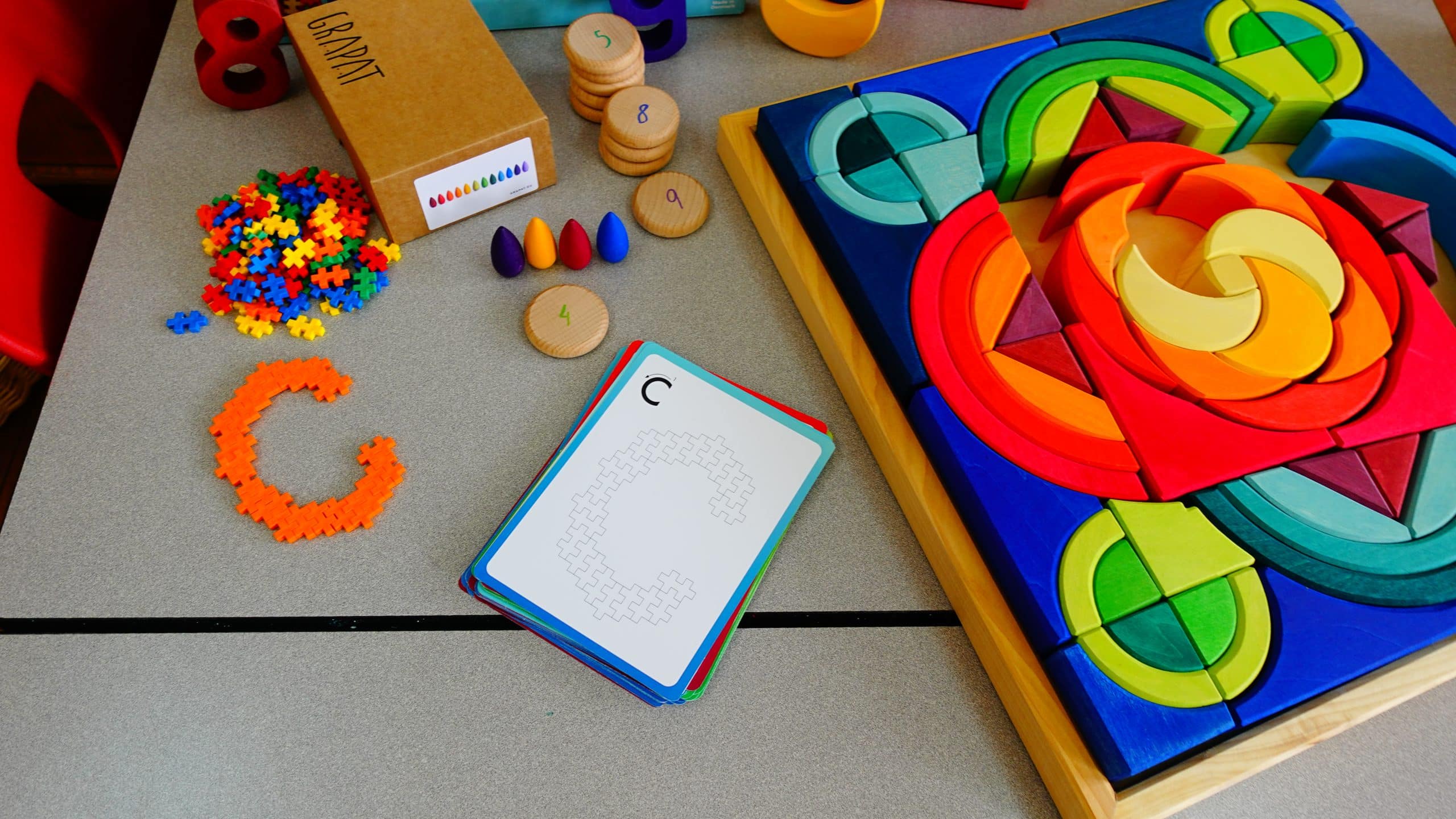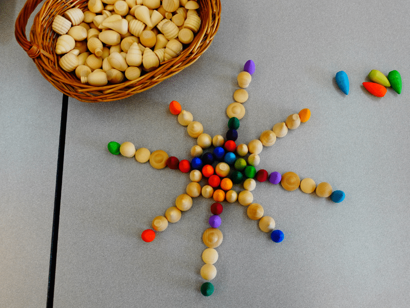 Amusez-vous à compter les mandalas, en soutien avec les Chiffres pour construire – Grimm’s ou les 60 pièces à compter en bois – Grapat. Créez des ensembles, faites des suites logiques, comptez par bonds, associez les chiffres pareils, etc. Utilisez le matériel du coffret pour faire des opérations.