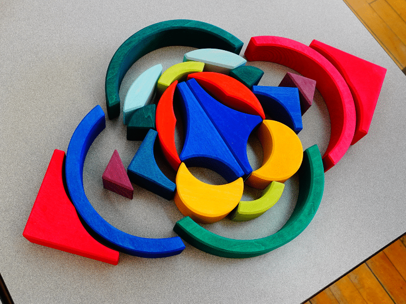 Utilisez le Grand ensemble de construction en bois avec arches – Grimm’s pour reproduire des chiffres et des lettres. Jumelez le jeu et les apprentissages de manière ludique et colorée! Créez des parcours de balles originaux lors de vos projets en sciences. Jouez avec la symétrie en créant des mandalas au sol. Utilisez votre créativité pour utiliser ce grand ensemble de construction en bois avec arches de plusieurs façons pour enrichir les apprentissages et permettre les manipulations qui sont essentielles à la compréhension et à l’appropriation de certains concepts.