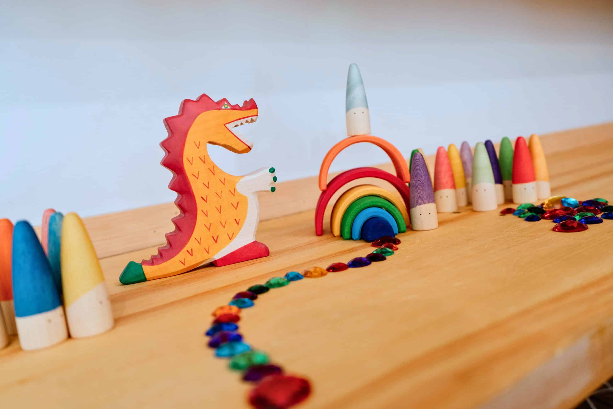 Ce coffret renferme des items colorés qui invitent au tri spontané, aux associations et au dénombrement. Utilisez le petit arc-en-ciel en guise de balançoire pour les gnomes ou encore comme cachette pour se mettre à l’abri du dragon! Tentez d’échapper au dragon, gardien des pierres précieuses, en utilisant votre courage et votre bravoure. Créez des chemins fantastiques avec les pierres scintillantes, classez-les par couleur, par forme ou par taille. Utilisez-les comme des pièces de monnaie, comme trésor ou encore pour en faire une vraie chasse en les cachant un peu partout dans la pièce! Plaisir assuré! Utilisez les petits gnomes comme personnages dans vos constructions ou pour créer des scénarios. Une foule de possibilités vous attend avec ce joli matériel de jeu polyvalent et coloré!