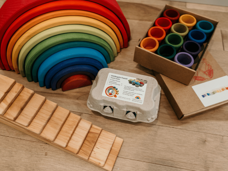 Les jouets Grimm’s sont conçus en fonction du jeu libre et polyvalent. Tous les jouets Grimm’s sont ouverts et sans mode d’emploi pour un jeu aux possibilités infinies. L’atelier de l’entreprise est situé en Allemagne. Pour Grimm’s, le sens du mot ‘’durable’’ ne se simplifie pas à sa définition première, soit ‘’qui dure longtemps’’. Grimm’s joint le mot durable au mot conception pour obtenir ‘’conception durable’’. Ainsi, les jouets sont non seulement durables de par leur matériau, mais aussi de par leur conception, c’est-à-dire que le design n’est pas affecté par les modes éphémères permettant au jouet d’être réellement durable dans son ensemble.