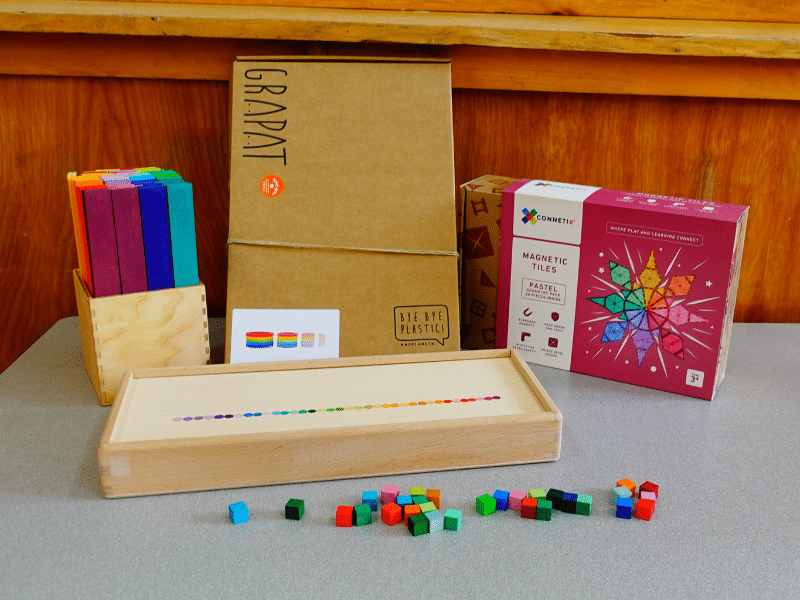 Voici notre nouveau Coffret découverte – Manipulations! Comme son nom le dit, il vise à mettre de l’avant les manipulations et répond à la curiosité qui est bien présente chez les enfants. Ce coffret découverte offre du matériel polyvalent pouvant à la fois servir à introduire des concepts mathématiques, en français ou en sciences, tout en pouvant être utilisé pour construire, découvrir et explorer. Ajoutez le tout à votre matériel de construction actuel et augmentez les possibilités! Créez un environnement d’apprentissage coloré et ludique tout en valorisant le jeu et les manipulations. Les enfants ont les sens en éveil, c’est donc en manipulant qu’ils pourront mieux assimiler certains concepts, les rendant ainsi davantage concrets et en soutenant l’aspect visuel si important pour de nombreuses personnes. Les enfants mettront à profit leur imagination pour créer à l’infini!