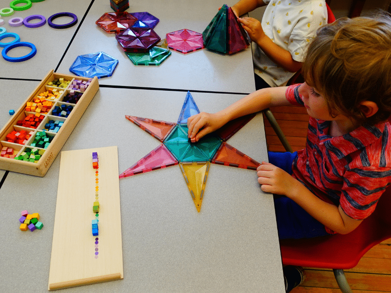 Amusez-vous en créant des formes, des chiffres et toutes sortes de lignes (droites, obliques, courbes, brisées, fermées, etc.). Explorez la symétrie et les polygones avec ce matériel de manipulation. Avec les tuiles Connetix, créez des polygones et utilisez les cubes du « Mis and match » pour calculer le périmètre ou encore l’aire. Pour aller encore plus loin, utilisez les Connetix pour construire des solides en 3 dimensions. Profitez de l’occasion pour compter les côtés, les sommets et les arrêtes.