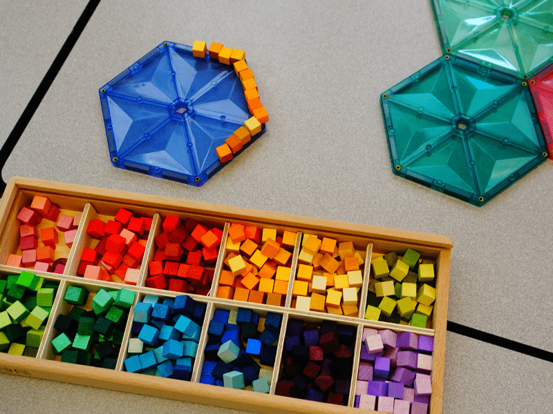 Autant avec les cubes du « Mis and match » qu’avec les bâton Leonardo, formez des lettres, écrivez des mots, éveillez la conscience phonologique et amusez-vous à séparer les syllabes! Utilisez les Connetix pour écrire un mot, des boîtes de son ou des voyelles et jumelez le tout avec n’importe quel matériel polyvalent pour jouer avec les lettres, les mots et les sons. Vous pouvez même les mettre sur un tableau aimanté, un TNI (tableau numérique interactif) ou encore sur un meuble ou une porte extérieure en métal pour donner une nouvelle façon d’explorer. Jumelés avec des crayons effaçables à sec, ça devient un outil parfait pour explorer et manipuler les maths et le français. Utilisez le boîtier en guise de tableau pour travailler la valeur de position. Jumelé avec les plaquettes pour compter, ce simple jeu devient vraiment pertinent!