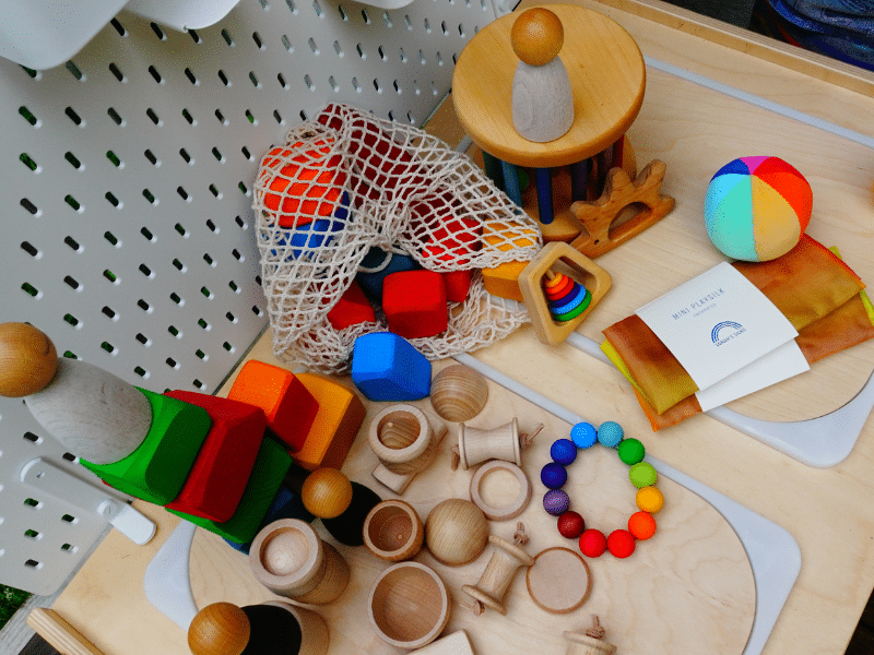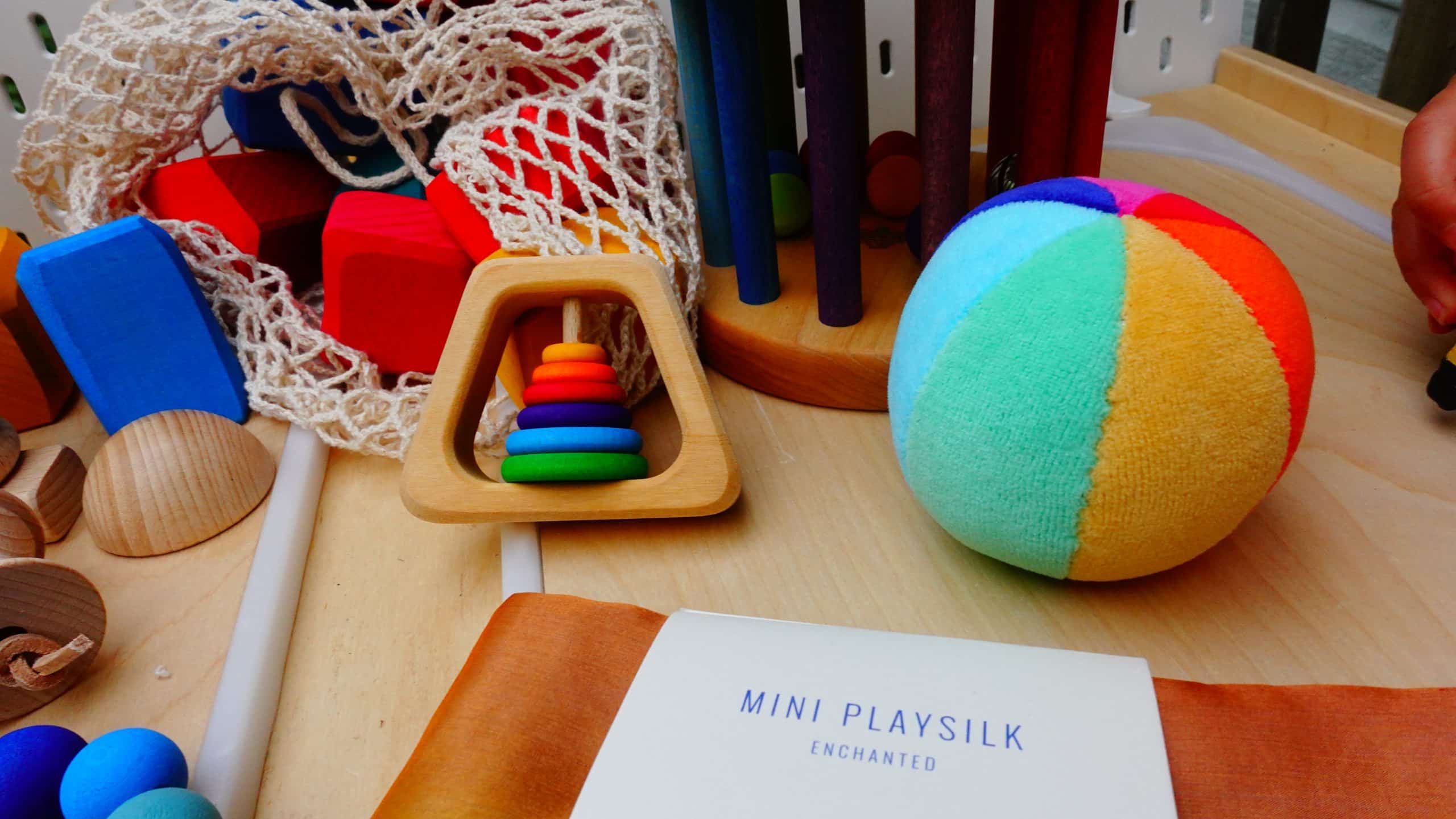 Les enfants pourront évoluer avec le matériel de ce coffret en utilisant la balle dans les jeux de lancers, l’anneau et les soies de jeu comme accessoires de déguisement, le petit hérisson et les personnages comme figurines, les blocs pour construire, les pots et bols (des trésors) pour ranger ou manipuler dans un bac sensoriel, l’ensemble de trésors pour explorer, cacher ou encore pour construire, le hochet pyramide et la roue roulante comme instrument de musique, etc. La polyvalence du matériel du coffret poupons le rend aussi pertinent pour les bébés que pour les enfants plus vieux.