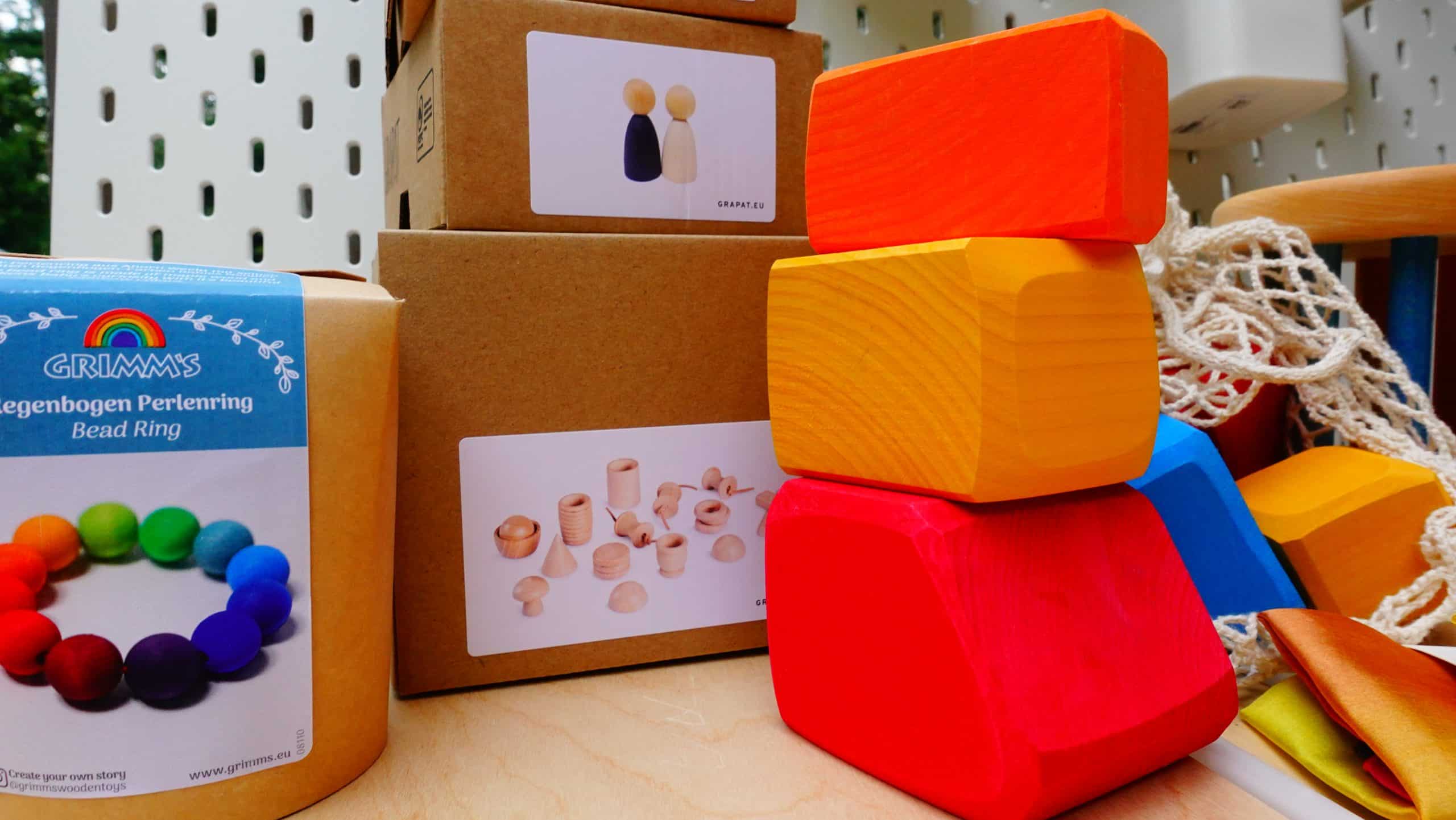 Les jouets Grimm’s sont conçus en fonction du jeu libre et polyvalent. Tous les jouets sont ouverts et sans mode d’emploi pour un jeu aux possibilités infinies. L’atelier de l’entreprise est situé en Allemagne. Pour Grimm’s, le sens du mot ‘’durable’’ ne se simplifie pas à sa définition première, soit ‘’qui dure longtemps’’. Grimm’s joint le mot durable au mot conception pour obtenir ‘’conception durable’’. Ainsi, les jouets sont non seulement durables de par leur matériau, mais aussi de par leur conception, c’est-à-dire que le design n’est pas affecté par les modes éphémères permettant au jouet d’être réellement durable dans son ensemble.