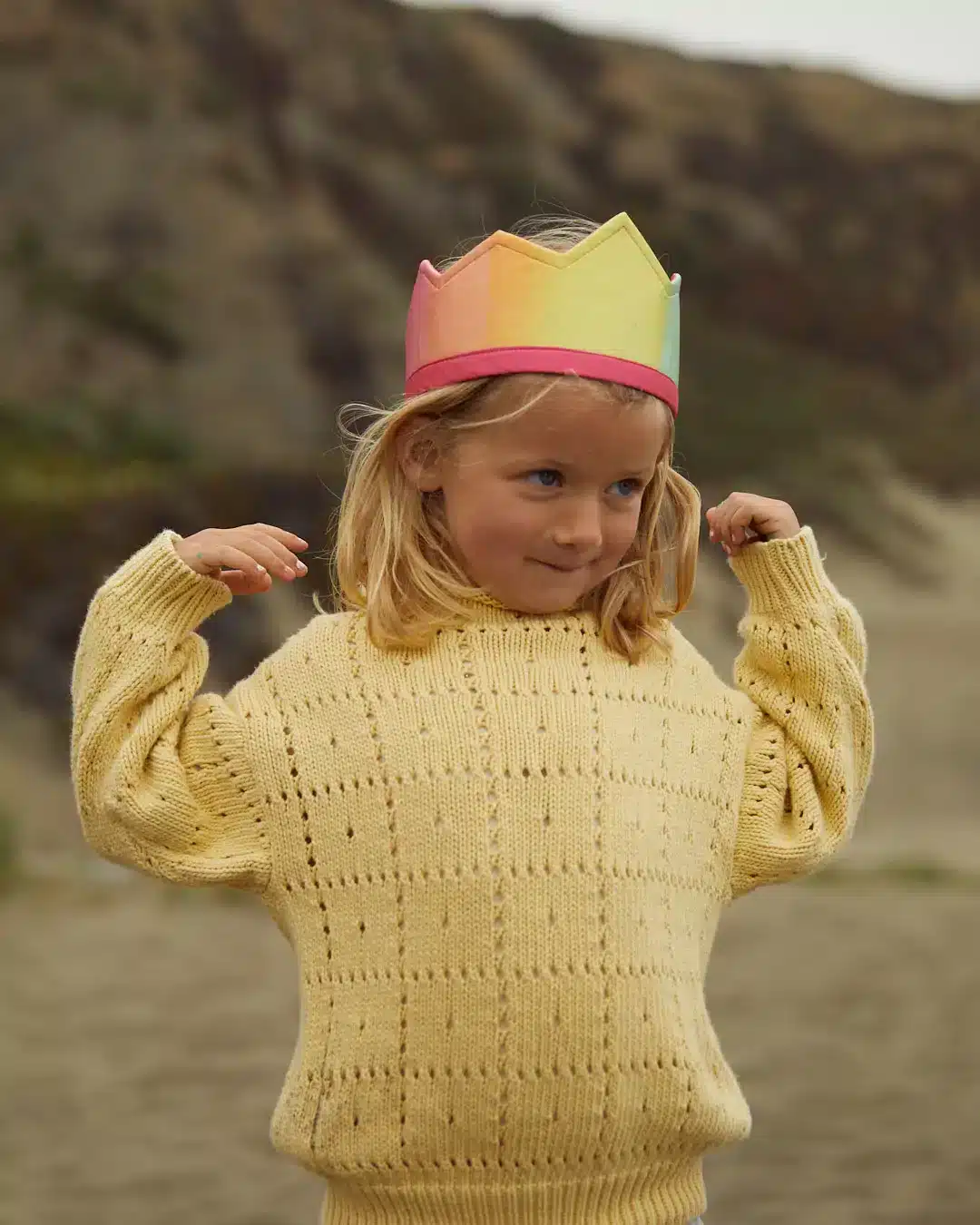 Les couronnes en soie Sarah’s Silks sont brillantes, lumineuses et magnifiques! Le dos élastique leur permet de s’étirer pour s’adapter à la plupart des tailles de tête. Peintes à la main dans des coloris exceptionnels, les couronnes Sarah’s Silks se déclinent en plusieurs teintes toutes aussi époustouflantes les unes que les autres. Les enfants adoreront ajouter des couronnes à leurs déguisements quotidiens et dans leurs jeux imaginatifs. Elles sont aussi parfaites pour les anniversaires ou pour toute autre célébration ! Se déguiser permet aux enfants de développer leur motricité, leur langage en nommant, leur côté imaginaire et même leurs habiletés sociales.
