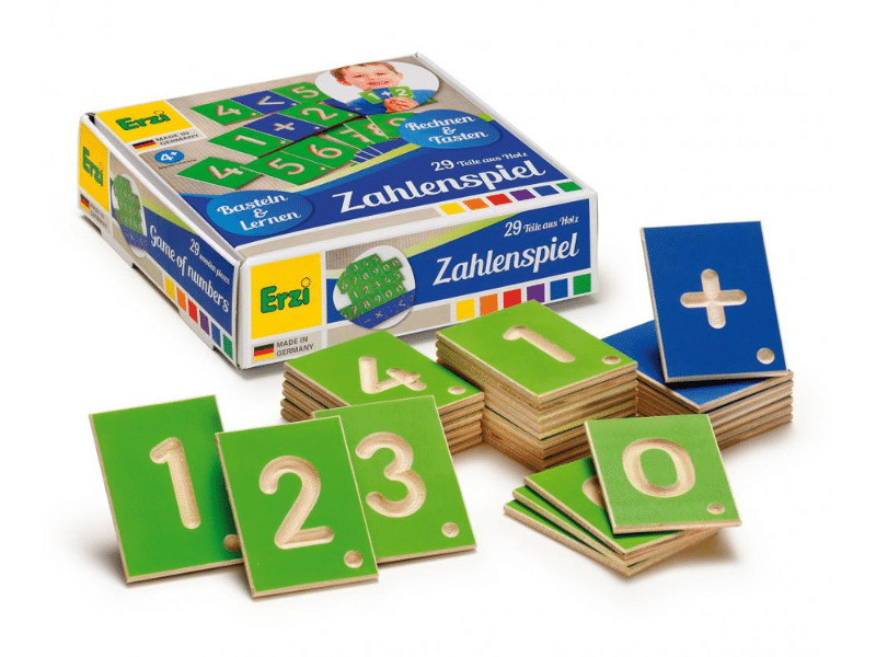 Cet ensemble de chiffres à manipuler de Erzi contient 29 tuiles en bois. L’apprentissage des chiffres et des symboles peut devenir un jeu avec cet ensemble de nombres à manipuler. Les manipulations constituent un moyen utile et ludique de comprendre les chiffres et les symboles. Dessiner les nombres puis les découper, les fabriquer ou simplement les tracer avec un stylet est un bon moyen de mémoriser des chiffres, soulignant ainsi l’importance de cette activité, en particulier pour les enfants d’âge préscolaire. Les caractères peuvent être utilisés pour comprendre des opérations arithmétiques simples et des comparaisons de tailles. La sensation tactile de ces plaques en bois les rendent également utiles pour les enfants ayant des besoins particuliers. Le positionnement du point de marquage dans le coin inférieur droit de la plaque garantit que le chiffre est dans le bon sens. Jumelez cet ensemble de chiffres avec n’importe quel autre matériel polyvalent, tel que des « loose parts », pour bonifier les manipulations et maximiser la compréhension des élèves.