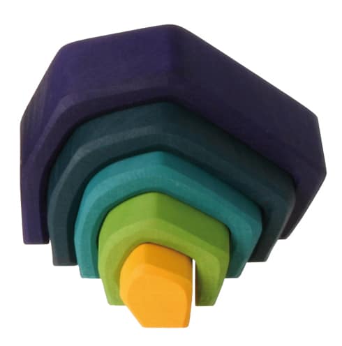 Cet ensemble Terre (petit) en bois est vraiment polyvalent et idéal déjà pour les petits enfants ! Les tout-petits pourront s’en servir pour empiler, trier et construire et, à mesure qu’ils grandiront, ils s’en serviront comme clôture pour les animaux, comme maison pour les gnomes et les figurines, etc. Avec la Terre, ils construiront d’étonnantes sculptures! Cet ensemble ajoute une touche de nature dans l’environnement de jeu des enfants. 5 morceaux