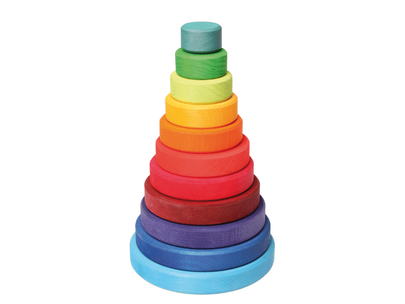 Avec la grande tour à empiler de Grimm’s, les enfants peuvent trier, empiler et construire. Lorsqu’ils empilent, la coordination œil-main est stimulée et la motricité fine se développe. Cette grande tour comprend dix pièces à empiler.