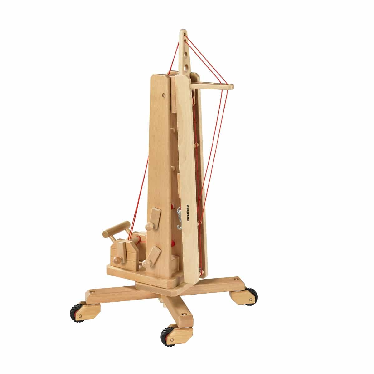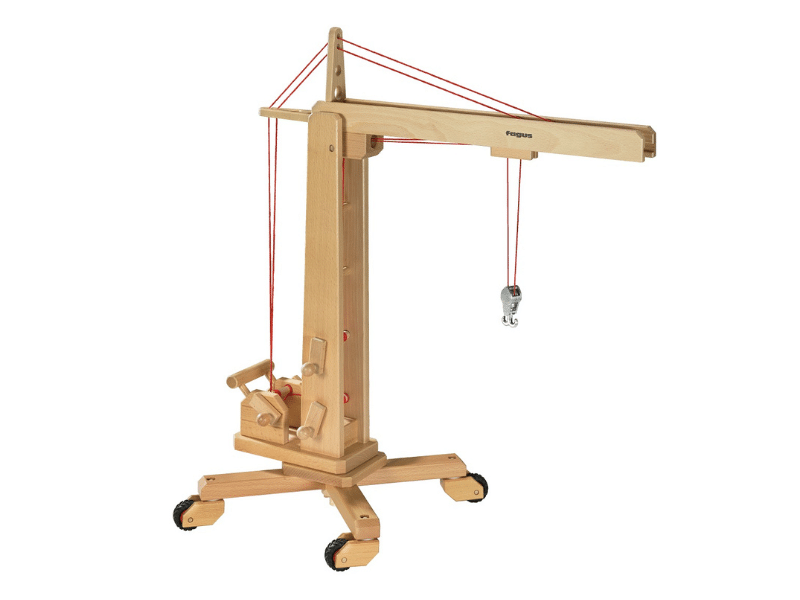 La grue en bois de Fagus est rotative, possède une tour pivotante, un chariot sur roues et des crochets réglables. Cette grue géante vous surprendra par sa taille imposante. Elle peut être manœuvrée facilement par la main de l’enfant. La grue n’inclut pas l’aimant de levage (FA30.62) ni la fourche de chargement (FA30.38) qui sont vendus séparément. Promenez la grue partout et travaillez votre motricité fine ainsi que votre coordination oeil-main en tentant d’attraper des objets au bout de celle-ci.