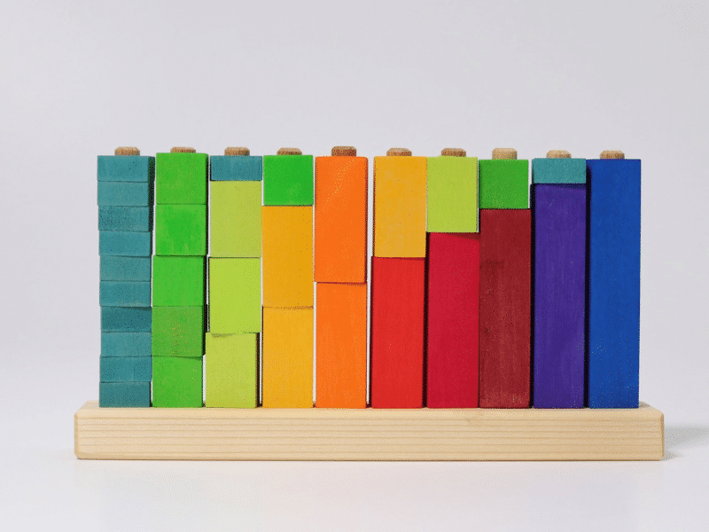 Explorez les mathématiques avec ce matériel de manipulation signé Grimm’s! Ce jeu à empiler permettra aux enfants de mieux visualiser les chiffres et l’arithmétique. Les blocs de 1 font 1 cm, les blocs de 2 font 2 cm, les blocs de 3 font 3 cm… jusqu’à 10!