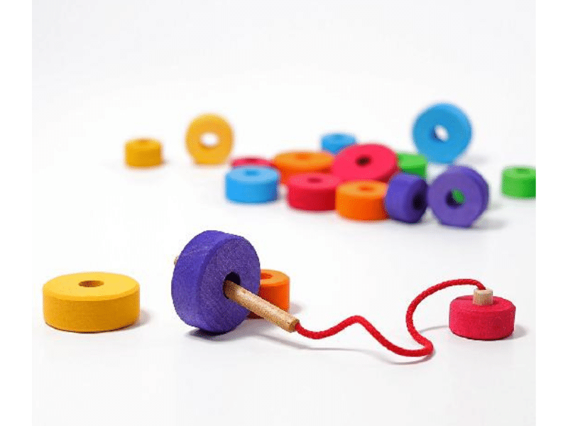 Travaillez la patience, la dextérité et la motricité fine de vos minis grâce à ce jeu d’enfilage de Grimm’s!