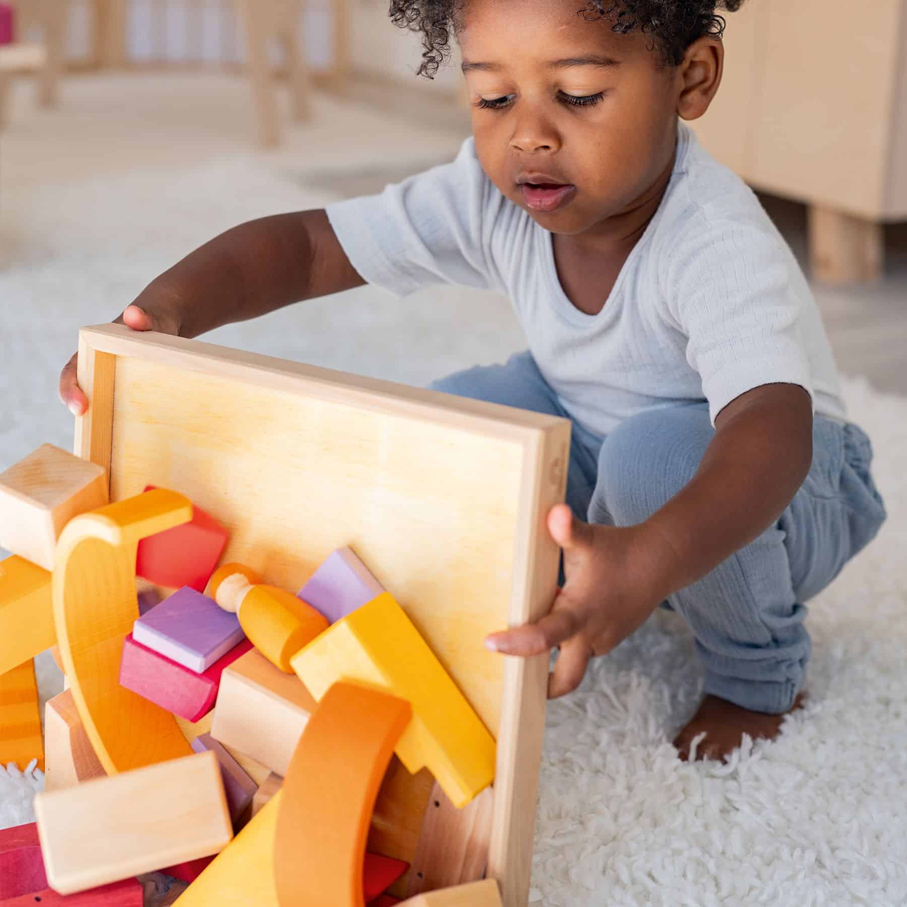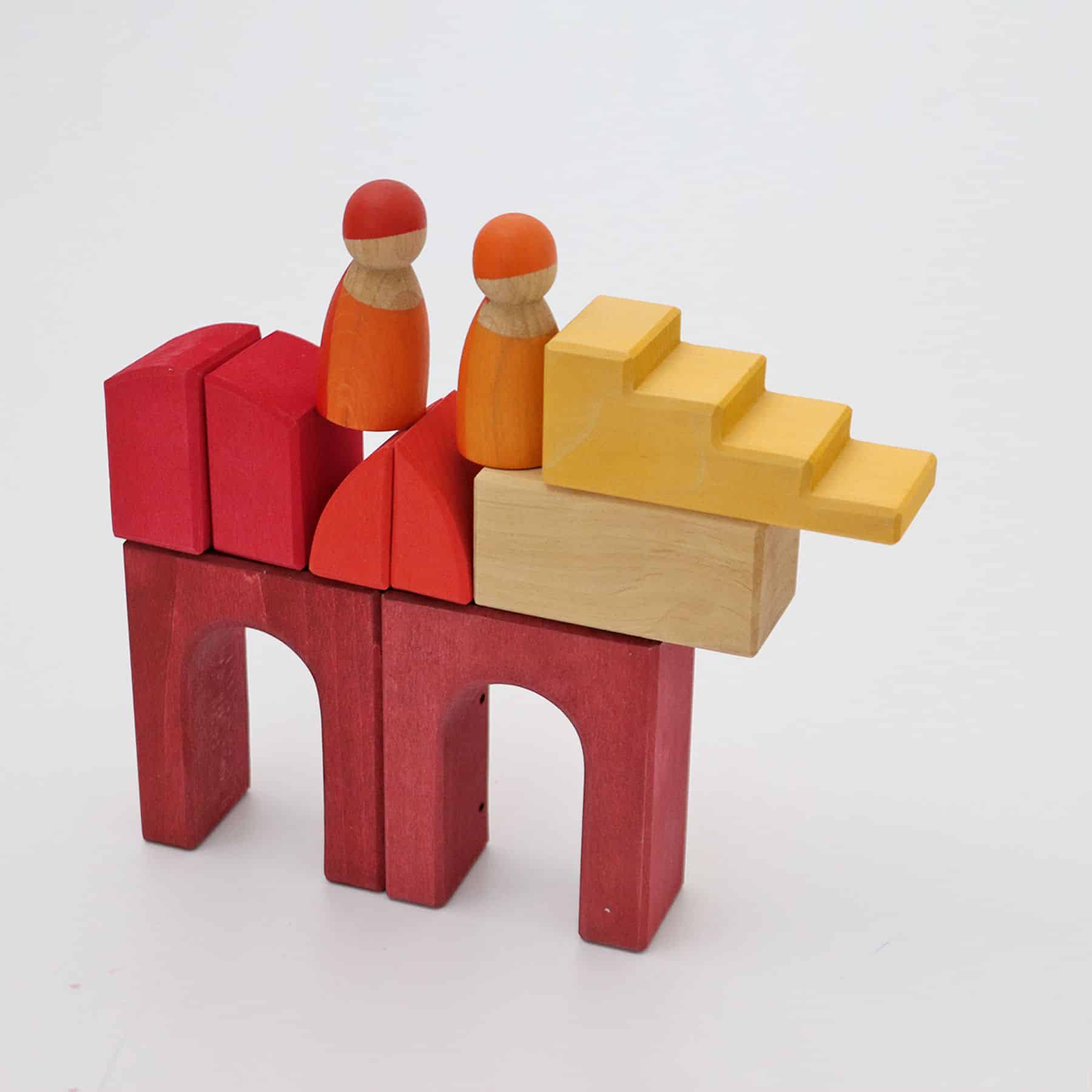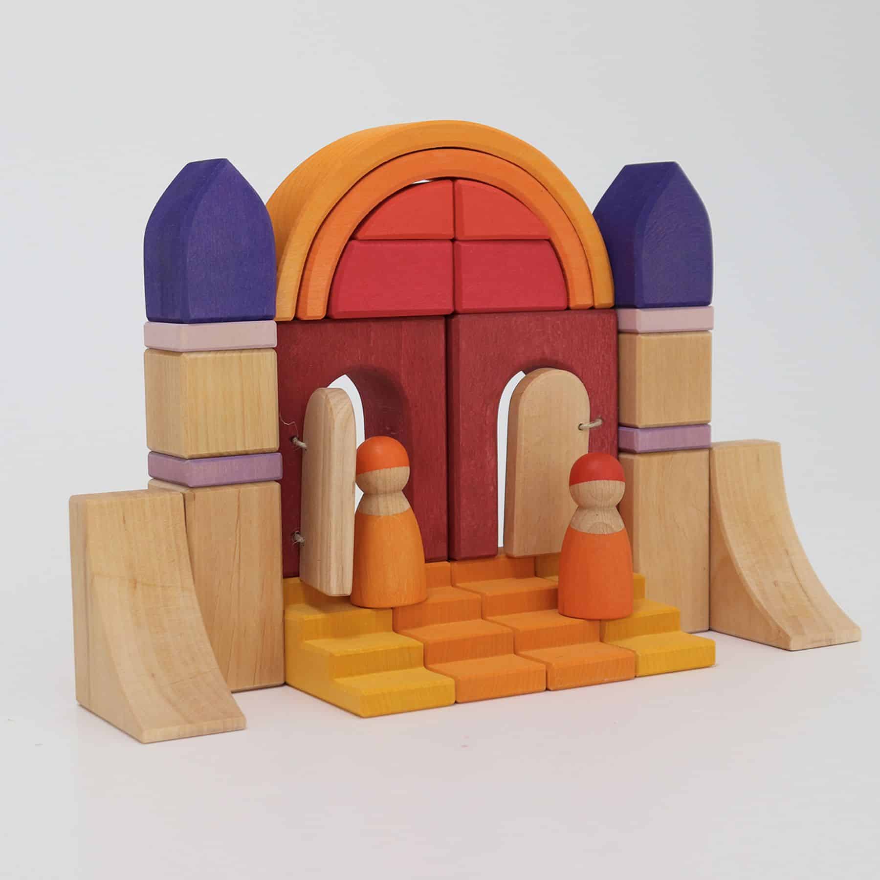 Lorsque les couches d’air se chevauchent dans l’immensité du désert, une réflexion de l’air se produit, donnant lieu au phénomène impressionnant du mirage. Ce qui a été vu a soudainement disparu! Comment est-ce possible? Des tons jaunes, oranges et rouges vibrants mélangés à du bois naturel confèrent au Monde à construire – Sable du désert une chaleur riche. Avec des matériaux de construction de formes très diverses, la construction libre et imaginative est encouragée. Cet ensemble complète la gamme Grimm’s avec des détails bien pensés, tels que des robes spéciales pour les deux personnages et une porte montable et mobile. Partez à l’aventure avec ce monde à construire aux possibilités presque infinies! Les enfants pourront explorer et créer d’une foule de manières avec ce matériel aux couleurs vibrantes! Créez des tours, des châteaux, des personnages fantastiques et plus encore! Tout est possible avec cet ensemble de construction polyvalent et clé en main! Il est prêt à être mis en action dans les jeux des enfants!