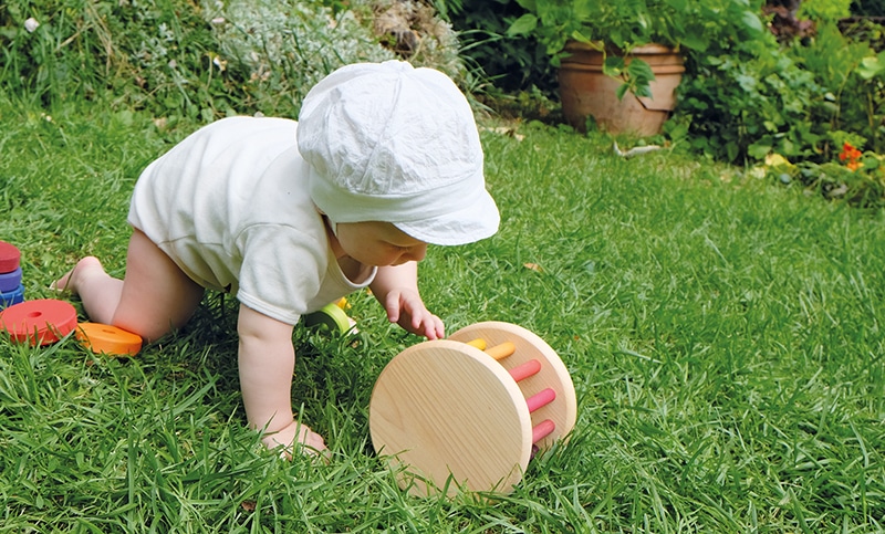 Cette roue roulante de Grimm’s avec cloche et balles en bois est de grand format. Éveillez les sens de bébé avec la faisant rouler jusqu’à lui, en l’agitant et en observant sa conception. Éducateurs/trices ou enseignants, utilisez cette roue roulante à chaque heure du conte. Faites-a rouler d’un enfant à l’autre pour les saluer à tour de rôle.