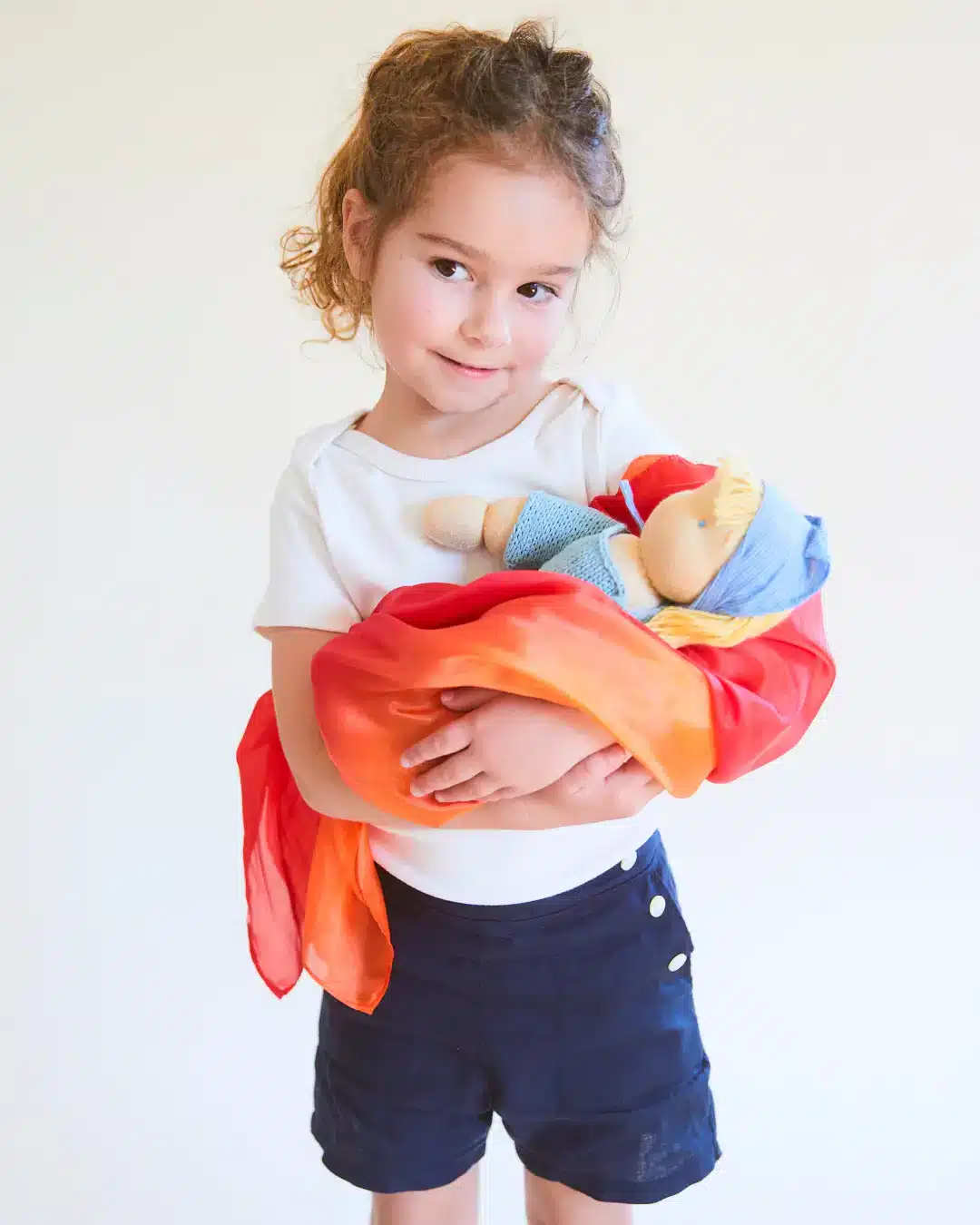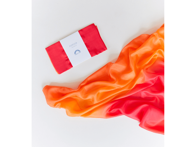 La soie de jeu est un magnifique jouet ouvert et évolutif! Tantôt, elle sera utilisée comme un déguisement en se transformant en cape, en robe, en tablier… Tantôt, elle pourra aussi être au centre d’un jeu symbolique en devenant une couverture pour la peluche de votre mini. L’utilisation qu’en fera votre enfant évoluera d’ailleurs au fil du temps, selon ses centres d’intérêt et ses envies. La brillance des couleurs des soies de jeu ajoutent une touche féérique à votre atmosphère et les teintes sont à couper le souffle. Les soies de jeu permettent aussi d’explorer un côté sensoriel unique à Sarah’s Silks.