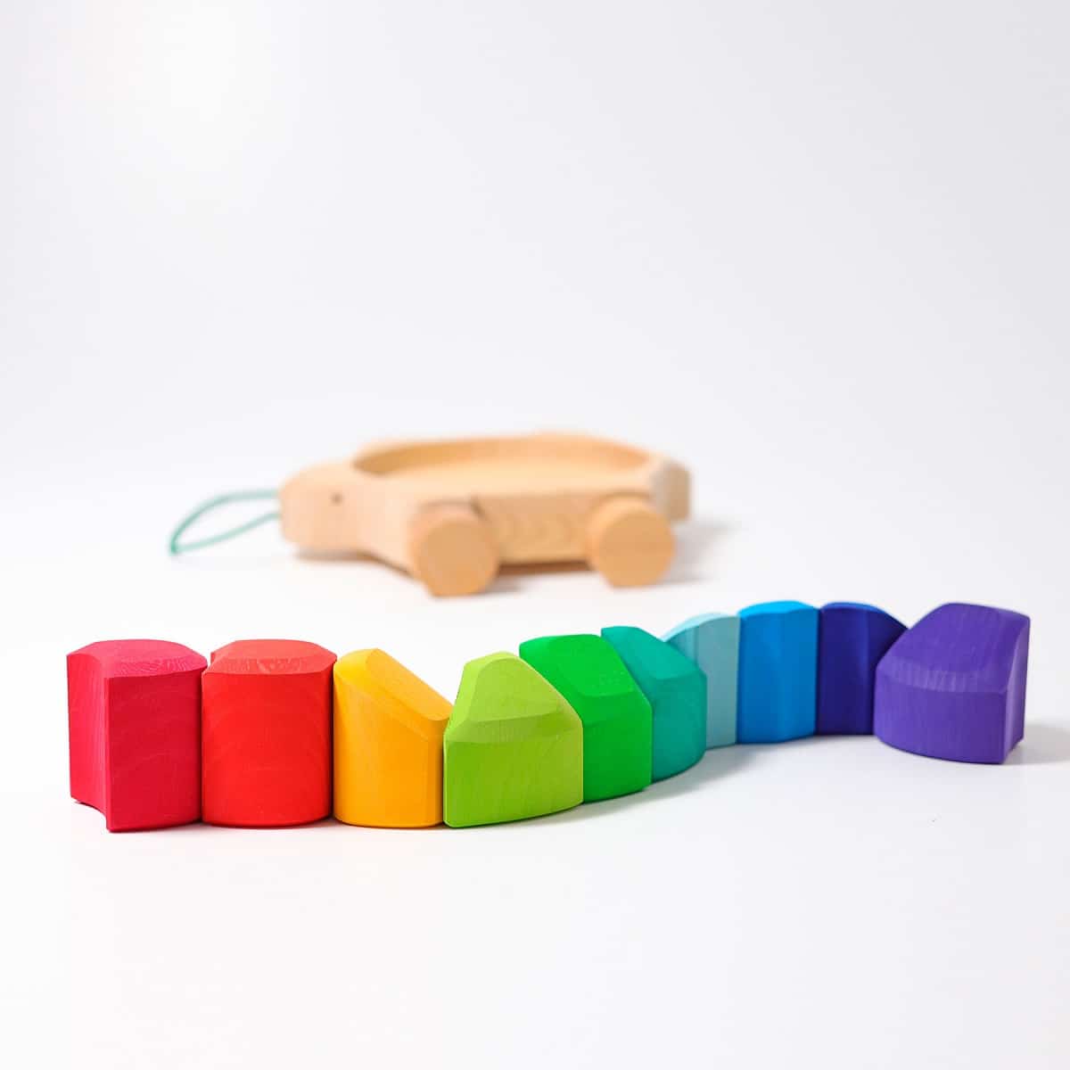 Si les enfants ont appris à marcher, ils aiment tirer quelque chose derrière eux. Les enfants peuvent entraîner leur motricité fine tout en empilant le puzzle de l’écaille de tortue et apprendre les harmonies de couleurs. Mais ça, ce sera pour plus tard. Pour commencer, l’enfant peut simplement charger facilement tout ce qu’il aime sur la tortue et peut utiliser les parties d’écaille de tortue comme blocs de construction.