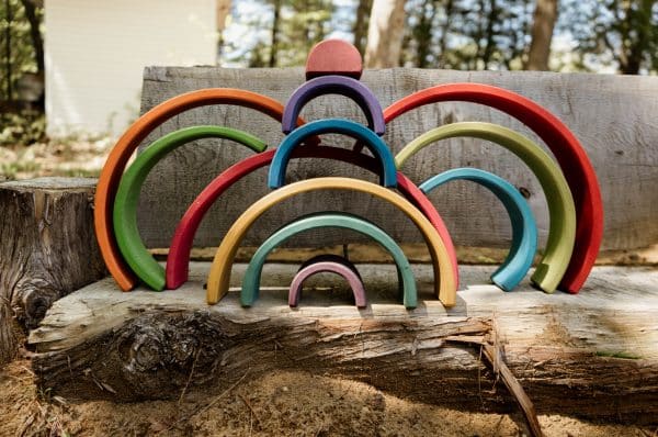 Les manières de l’utiliser et de l’explorer varieront d’un enfant à l’autre, selon son âge, son niveau de développement, ses intérêts et son niveau de créativité. Quand on juxtapose les arcs avec d’autres jouets libres et polyvalents (...), on obtient des jeux variés, créatifs et sans limites ! Il existe plusieurs jouets complémentaires qui sont faits à partir des mêmes couleurs que l’arc-en-ciel afin de permettre le tri spontané et les associations.