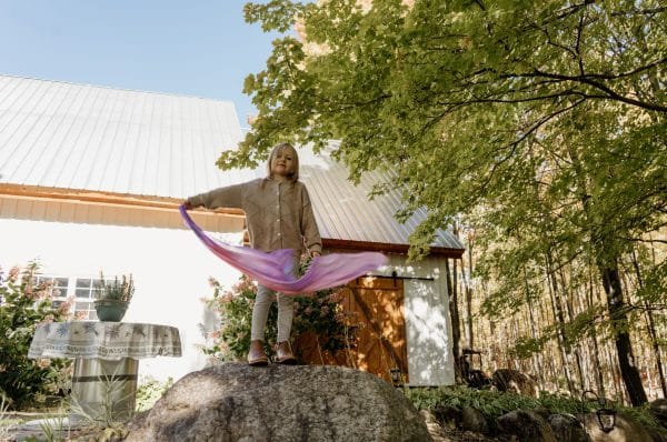 Si certains jouets types de l'univers du jeu ouvert semblent facilement rejoindre les non-initiés, pensons à l'arc-en-ciel de Grimm's qui est si populaire, certains éléments prennent plus de temps à apprivoiser. Ça m'a donné le goût de vous parler d'un matériel qui peut sembler bien ordinaire mais qui cache un potentiel qui mérite d'être connu. Les soies de jeux, plus souvent nommés sous le terme anglophone "play silk".