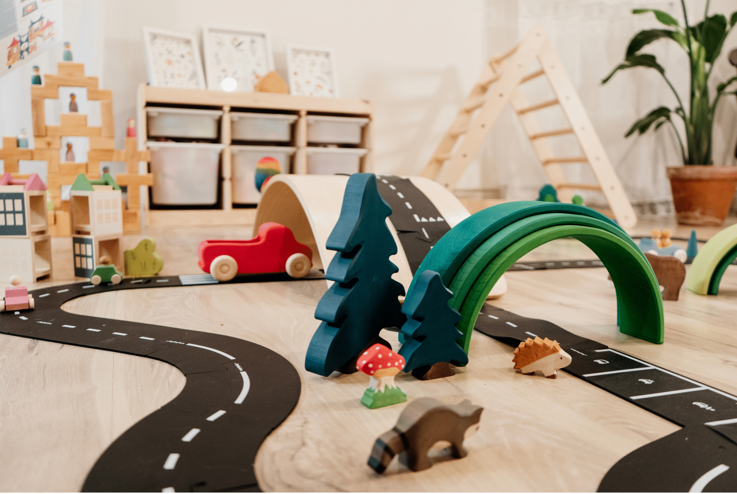 Tout cela peut être bien simple. On prend des éléments qui nous entourent, des jouets qui font déjà partie des préférés de nos cocos et on les installe de manière invitante ou attrayante et on laisse la magie opérer.