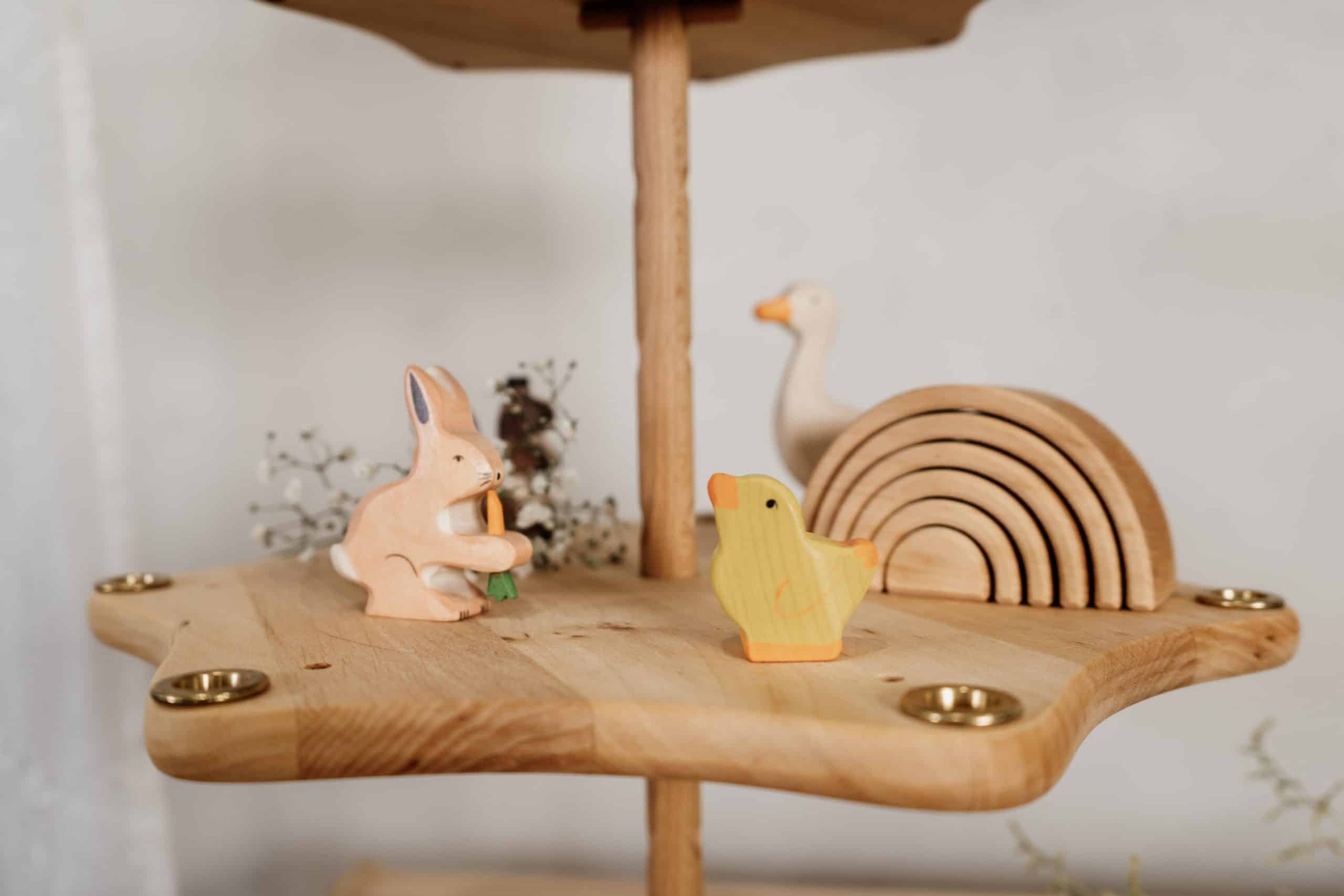 La deuxième idée c’est d’y faire un rappel de la nature, en portant attention à ce que ce soit cohérent avec la saison en cours. Je pourrais y placer des figurines d’animaux correspondants aux animaux que nous voyons normalement en cette saison dans notre quartier, une image ou une carte postale donc l’illustration représente la “vibe” de cette saison pour moi. Bien sûr, il est possible d’acheter (mention spéciale aux figurines disponibles sur les jouets ciboulots, je me permets de vous partager mon code rabais: 10% de rabais avec Zoe10), mais nous pouvons tout à fait créer pour notre table des saisons. Par exemple: des figurines d’argiles ou en pâte de sel compléteront bien une table des saisons, des petites créations en laine, en feutrine, ou crées en récupérant des éléments de la nature.