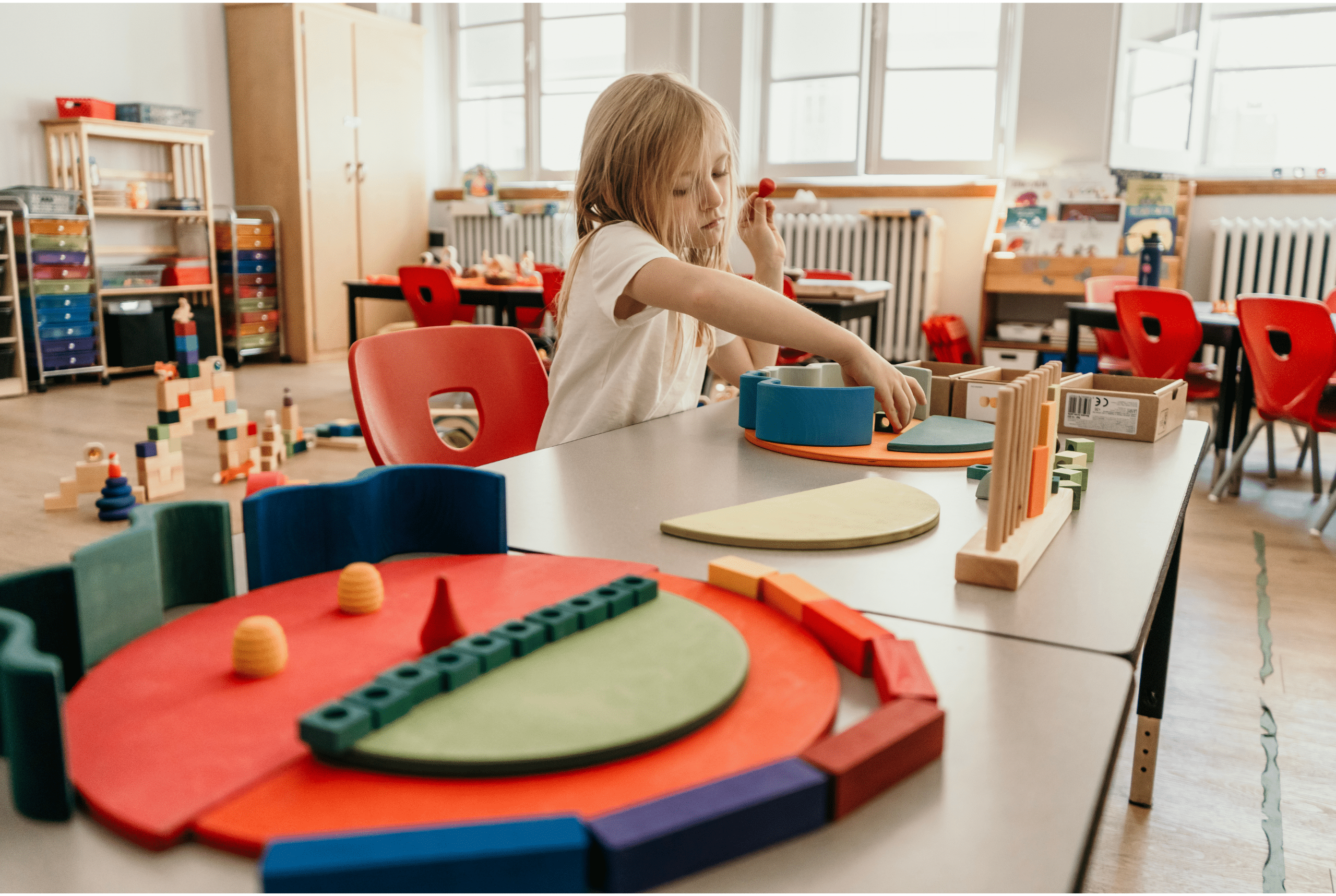 Ces images, croquées sur le vif dans une école primaire, sont la preuve que le matériel ouvert et polyvalent peut tout aussi bien être utilisé en classe, avec des enfants plus vieux. Que ce soit pour permettre aux enfants d’explorer, de mettre à profit leur créativité ou pour intégrer certains acquis de manière plus ludique, le matériel polyvalent répond à plusieurs besoins. Il permet aux enfants de manipuler pour mieux intégrer certains concepts, entre autres pour les mathématiques. L’enfant apprend par le jeu, on le sait déjà, alors ça ne fait pas exception pour les enfants d’âge scolaire! 😊 C’est par le jeu que l’enfant va intégrer davantage des nouveaux acquis et c’est par ses sens qu’il va plus facilement les assimiler et les mémoriser.