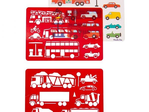 Aujourd’hui c’est mercredi- Pochoirs à dessin (véhicules) – Moulin Roty